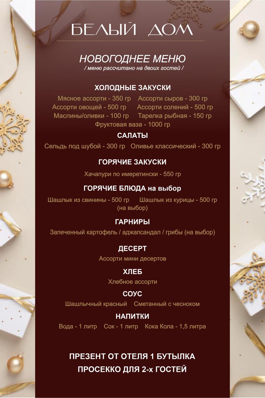 Для наших дорогих гостей мы подготовили вкуснейшее новогоднее меню с разнообразием блюд, которые подарят незабываемые гастрономические впечатления.